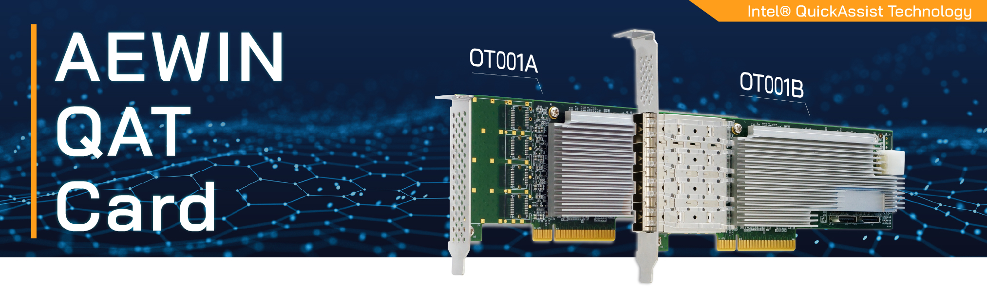 AEWIN, a leading builder of innovative network appliances, is announcing the availability of OT001 and OT002 QAT accelerators. These cards are ready to accelerate cryptography and compression workloads with Intel® QuickAssist Technology enabled chipset. Powered by Intel® C626 and C627, AEWIN OT001 and OT002 are designed to offer hardware acceleration in compute intensive tasks, such as encryption and compression workloads, freeing up CPU for additional tasks.Utilizing the widely supported QuickAssist API, these adaptors can enable additional layers of security through a variety of cryptographic algorithms, such as RSA, AES, and KASUMI. OT001 and OT002 provides up to 50Gbps and 100Gbps throughput in AES128 respectively, and up to 197k and 472k ops/sec in RSA. Additionally, they can be used to compress data to free up congested network bandwidth or reduce storage requirements.