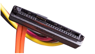 On the device end, an integrated power and data cable was designed for SAS with the aim to allow backward compatibility of interfacing with a SATA drive. A further evolution of this connector with clever usage of space allows it to carry additional pins to support 4x PCIe data lanes to interface with U.2 NVMe SSDs.