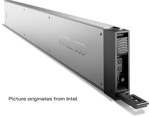 Intel Ruler is a slightly complicated topic, so we’ll just go over the overview today. Intel ruler is officially named EDSFF, Enterprise & Datacenter Storage Form Factor. It aims to replace the M.2 form-factor by aiming at the weakness of M.2. EDSFF has long variants that allows more NAND chips onboard for drastically increased capacity. On the other end, there are the E1.s short form factor that is small, but also install parallel to the motherboard, but with the slim edge toward the motherboard. This allows highest density and lower footprint on the host board. This also allows the form factor to be front mounted in a high-density configuration, limited by only the number of PCIe lanes available. It also took a page out of the Samsung NF1 playbook by increasing the width of the drives to increase NAND density.