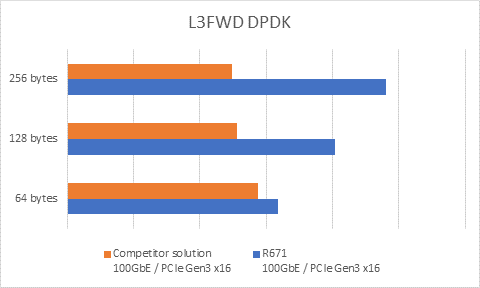 Figure 1 – 100GbE Network card L3FWD Benchmark vs Competitor