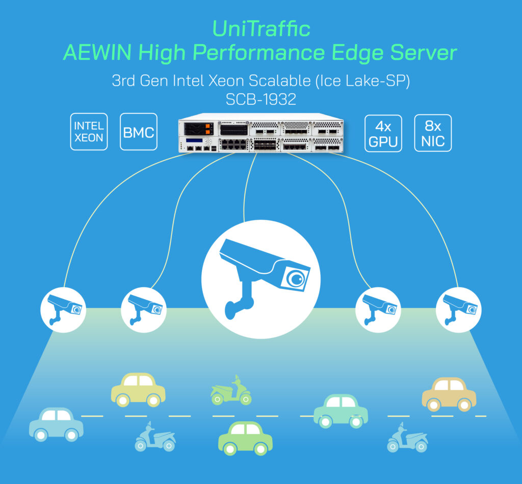 UniTraffic requires a high-performance system to process multiples of live video inputs. AEWIN SCB-1932 is the ideal platform to host this application. It is powered by the latest Intel 3rd Generation Xeon-SP processors, support up to 2TB of memory, and 1600W redundant power supplies. The design is a refinement of our successful and widely deployed SCB-1921 network computing system. Video input processing is provided by up to 4x NVIDIA T4 GPUs. SCB-1932 has on-board BMC for ease of management and AEWIN Secure Boot technology for safe-guarding on-board firmware. Through AEWIN’s network computing lineage, SCB-1932 has outstanding network connectivity options through AEWIN’s full line of network expansion modules that ranges from 1Gbps all the up to 100Gbps.